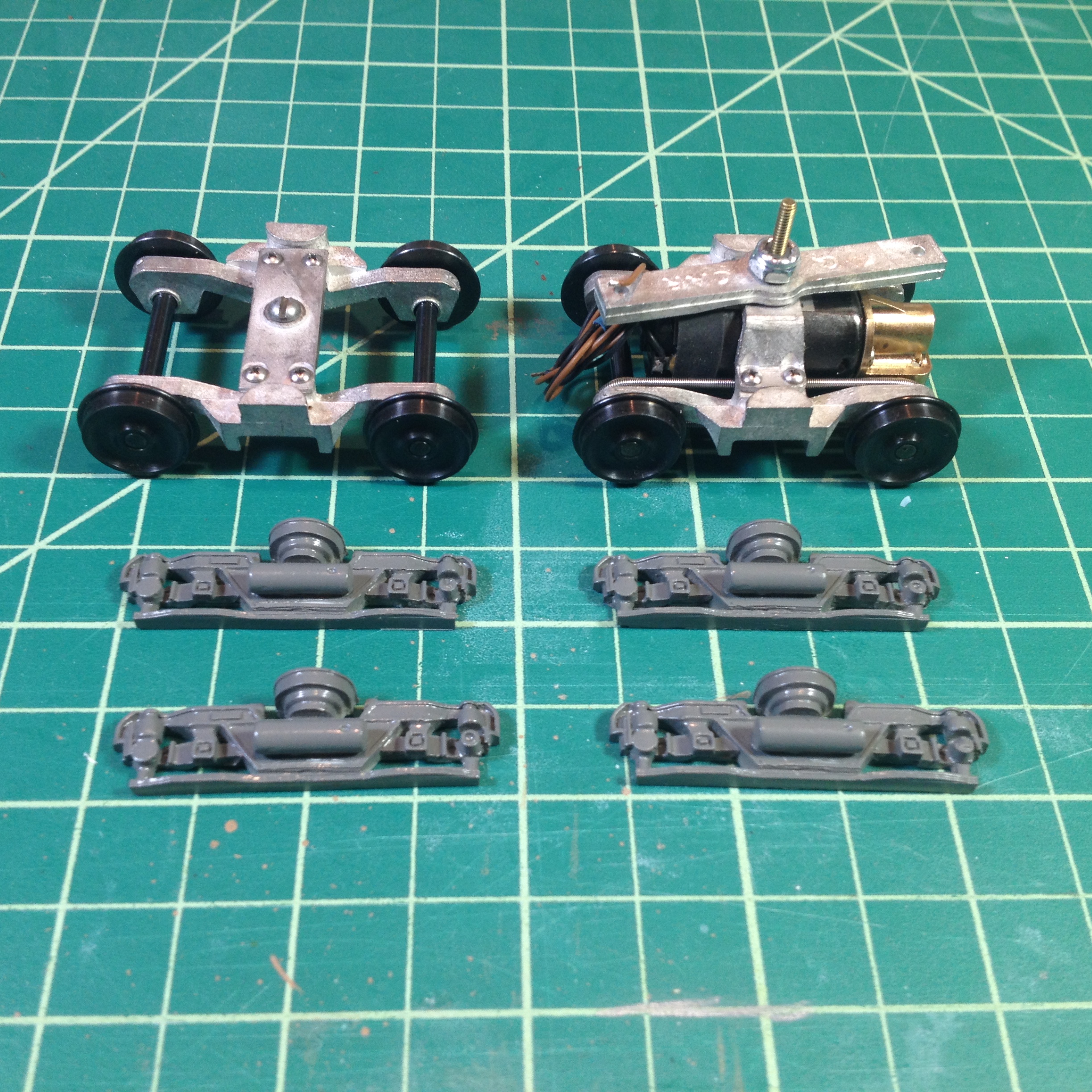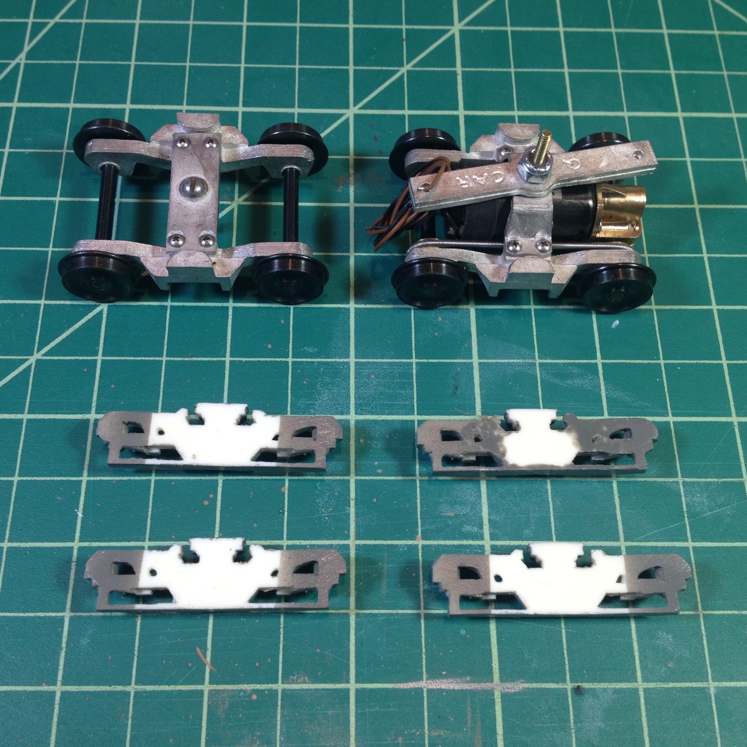 This is the second car, 4155. In the photo on the left, the end "blocks" (rear seats and control dash) are not glued to the floor. They were just placed there for the photo. Afterward, they were glued into the inside of the body and used to fasten the floor in place with 2-56 screws.